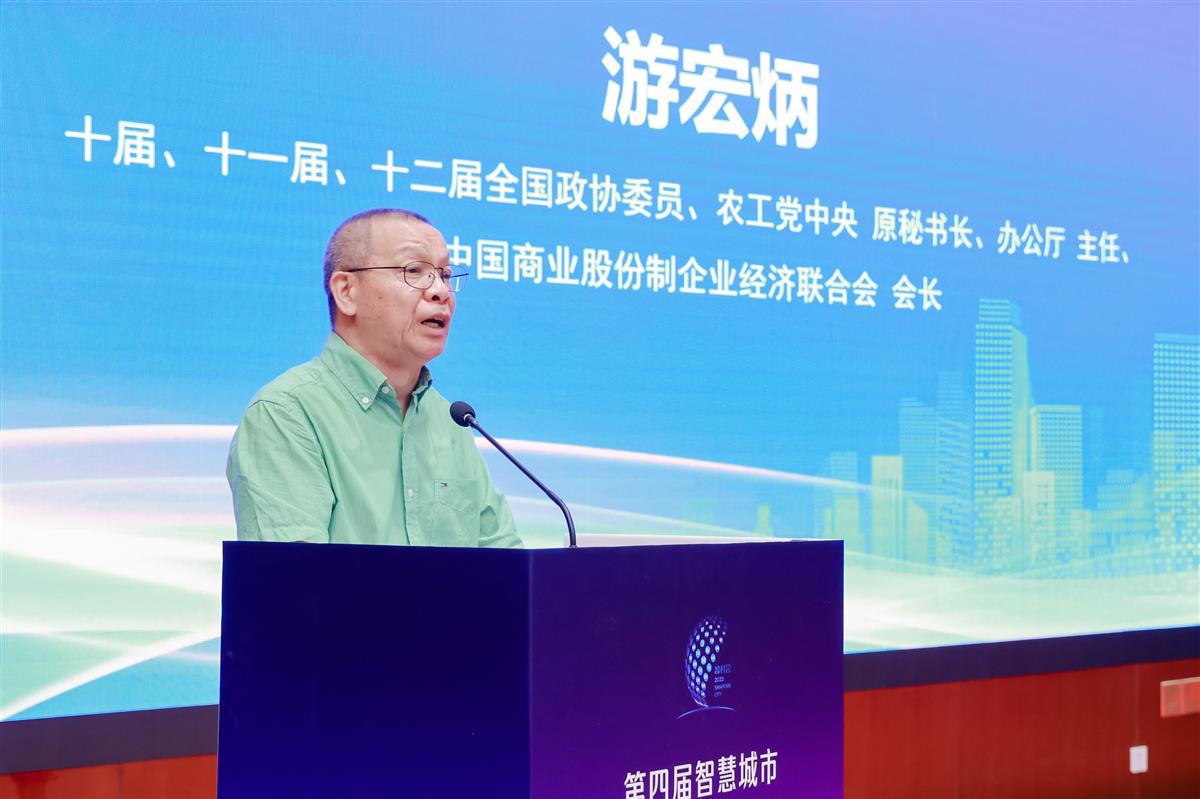 图为中国商业股份制企业经济联合会会长游宏炳做主题发言。